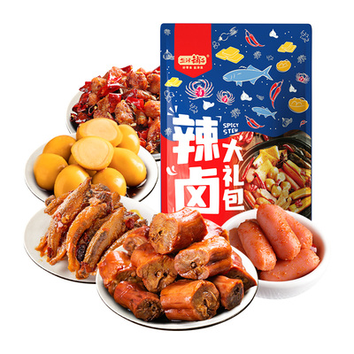 盐津铺子卤味零食大礼包50包,休闲食品鸭脖鸭翅鱼豆腐魔芋爽,好吃又美味!有蛋有肉,卤味大满足!