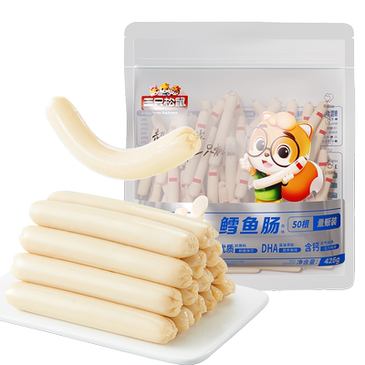 软糯Q弹,三只松鼠_鳕鱼肠50根425g即食鱼肉肠儿童休闲零食小吃,