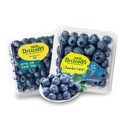 云南蓝莓中果,共4盒!优选浆果品种,果肉细腻,酸甜多汁,饱满脆嫩,皮薄紧实,比超市划算!坏单包退~
