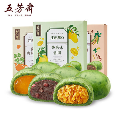 【五芳斋青团】!一口下去,满满的春天味道!五芳斋大牌青团!!外皮软糯,剔透玲珑,咬一口又香又软糯!还不会粘牙,好吃!!多种口味,芒果/豆沙…
