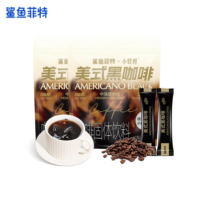 鲨鱼菲特小轻担纯黑咖啡,美式减无糖精0脂燃健身云南速溶粉学生