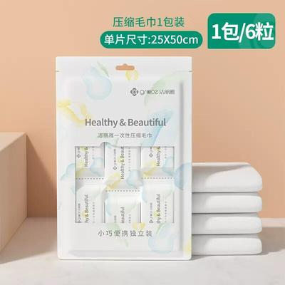 洁丽雅!加大加厚大尺寸压缩毛巾,25cm*50cm!6条装,独立包装,便携装,亲肤柔软,不含荧光剂,五一出行,必备啊!
