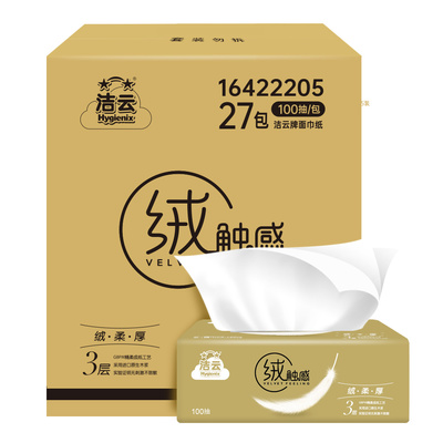 拍四件!洁云绒触感抽纸,四层加厚贴合,紧致厚实,原生木浆制造,特殊纤维交织工艺,每一次触摸都是与自然的亲近,精致压花,不易分层,柔韧不易破!