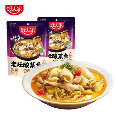 【稳定签到】好人家老坛酸菜鱼调料包350g,可做3斤鱼,正宗四川老坛酸菜,精选辣椒、花椒、生姜、植物油等多味调料,一料多用,吃法多样,味道纯正!