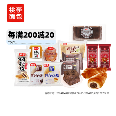 【拍三件原价:37.8元,卷后:29.8元,叠加300-30,到手26元】桃李食品旗舰店!放心冲!有酵母面包,铜锣烧等多款任选,每种都超级好吃!
