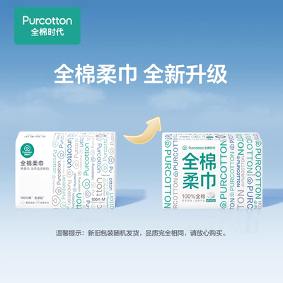 【买2件包邮,立减28元,买返60元,叠加159-20元淘客券,140-10元拉新券,到手41.8元6包,单包6.97元,88vip单包6.12元】全棉时代洗脸巾擦脸巾平纹M码洁面巾纯棉柔巾100抽*3包洗面巾