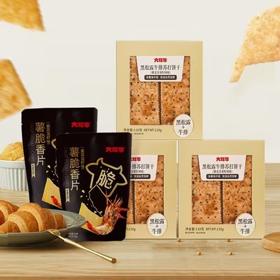 【到手5件共16.9亓】大耳牛黑松露苏打饼3盒+2袋脆薯饼干,独特芬芳,融入黑松露,黑松露大自然宝藏,添加藜麦奇亚籽!天然高纤维!外脆内酥,鲜咸可口【赠运费险】