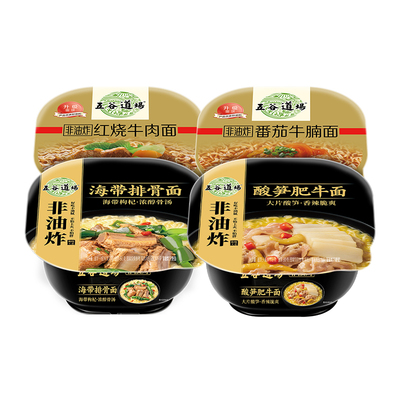 【88会员17.1!这个是大桶装的!俗话说泡面一桶吃不饱,两桶太多了!这个刚刚好!!】五谷道场非油炸泡面,四大碗装组合:酸笋肥牛面+番茄牛腩面+海带排骨面+红烧牛肉面,耐煮易熟,5分钟享受餐厅级美味!