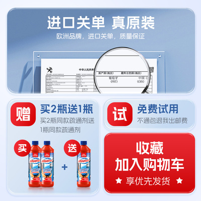 【买二送一】原装进口膜太管道疏通剂,600ml/瓶,清新去除异味,强力除垢,杀菌消毒,快速溶解高效去油去渍~!趁着便宜囤起来,万一哪天家里下水道堵了,不用干着急!【送运费险】