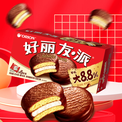 【一件打3.2折,满300减71到手仅25元】好丽友巧克力派蛋糕,醇正巧克力味涂层,棉花糖般Q弹夹心+松软蛋糕!0蔗糖添加轻负担!不甜也不腻!早上不知道吃啥的买它,香醇细腻~美味又健康!家里的小朋友都爱吃!整整一大箱!冲啊!