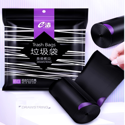 【e洁垃圾袋60只】高颜值,自动收口,免撕抽取设计,大容量,加厚承重力强,耐磨韧性强,环保健康,e洁大牌,获得国家优质制造商证书认可,值得信赖!