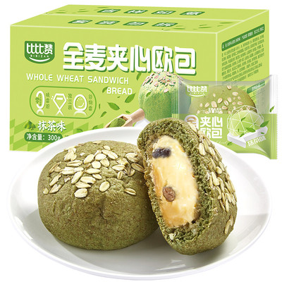 【包邮】比比赞全麦夹心欧包抹茶味300g