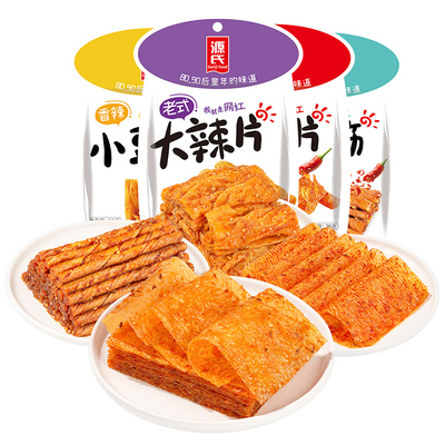 【大辣片30g*3包+小豆筋30g*2包+素牛尾巴18g*5包】源氏食品旗舰店,严选原料,十万级无菌车间制作;多年以来的老口味,还原小时候幸福的味道,始终如一,带你穿越到童年时光。