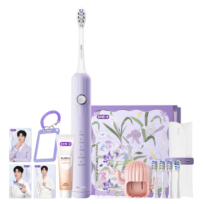 礼盒款:标配刷头*2+清洁型刷头*2+白色旅行盒*1+鸢尾花贴纸*1+泡感牙膏*1+粉色牙刷架*1+加送代言人小卡*3+卡套*1】4周减少20.8%牙釉质外源性色斑全身防水!给你的牙齿做个SPA