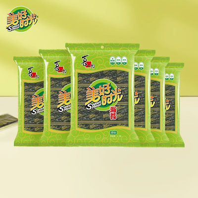 降价了!【赠果汁果冻120g*1袋】线下超市1袋5元,咱6袋抢17.9!休闲健康零食就吃,美好时光大牌,香脆原味海苔、番茄味海苔!又香又脆,上头!