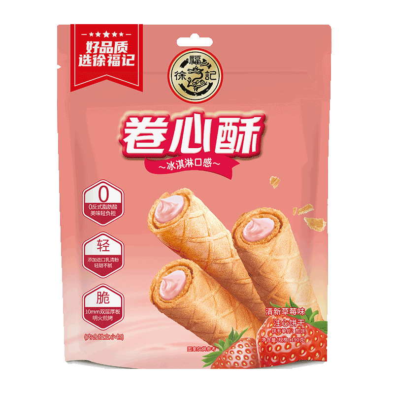 徐福记卷心酥草莓味袋装190g