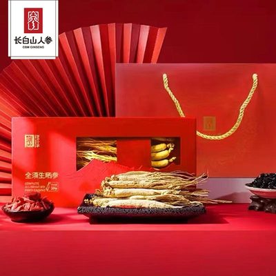 拍4到手99!赠手提礼袋!官旗【长白山人参】东北特产全须生晒礼盒版,正品泡酒煲汤专用,政府授权品牌,国家地理标志产品,线下超市1盒都要399元!五年参龄,大根保年份,质检一等品!表皮金黄,纹理清晰,营养价值高,送人倍有面儿【赠运险费】