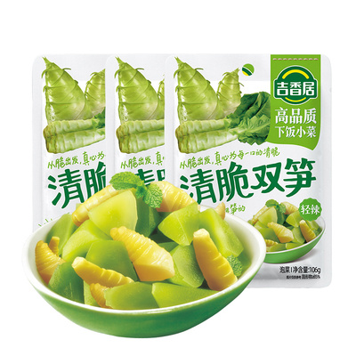 【页面价19.8元,立减1元,领8元券,叠加129-35,淘金币1.98元,88会员到手3.2元/3袋,折1袋1元/106克】吉香居清脆双笋106g*3袋,超赞~
