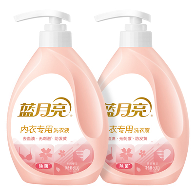 【满300-30元,凑单后46.82,蓝月亮内衣洗衣液500gX2瓶,洁净因子活性酶,轻松去血渍,搓洗不费力,深入纤维,高效除菌,贴身守护~【升级版运费险】
