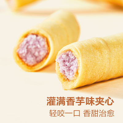 良品铺子的香芋夹心蛋卷!!!一口下去芋泥与蛋卷的双重口感,酥脆香甜!!口感贼好!!闲暇时刻来两支,好吃到根本停不下来!老少益智都能吃!