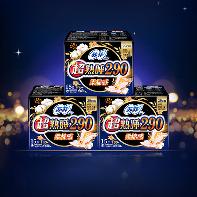 【下单立减19元,88会员95折,实际到手27.45元!!】苏菲超熟睡290mm15片*3包安享精致睡眠舒适柔棉感,超熟睡系列经典升级,量多夜晚也能安享精致睡眠