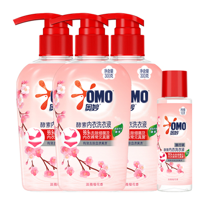 【立减5元,88会员到手22.7元】88到手22.7;奥妙樱花内衣洗衣液300g*3+100g,内衣裤清洁不充分,容易危害身体健康。全新酵素内衣洗衣液,呵护贴身衣物~