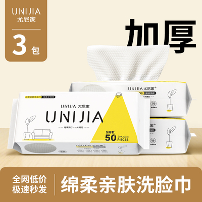 【尤尼家】一次性洗脸巾,超值50抽*3包,加厚80g珍珠纹,20*20cm大尺寸,抽取式干湿两用,绵柔巨吸水!卸妆洗脸擦拭,柔软亲肤不掉絮,怎么用都满意!