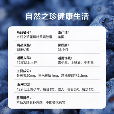 来自美国的自然之珍,特别添加了欧洲越橘精华,每瓶含65粒高浓度护眼胶囊。专为青少年及成人设计,帮助缓解眼部疲劳,保护视力健康。采用天然成分,安全可靠,适合长期服用。无论是长时间面对电脑工作还是学习压力大,都能有效呵护您的双眼。立即购买,享受清晰视界带来的美好生活!