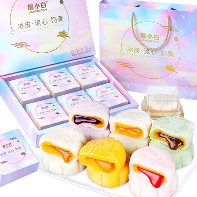 到手5.1,靓小白冰皮月饼礼盒,炫彩礼盒4饼4味136g