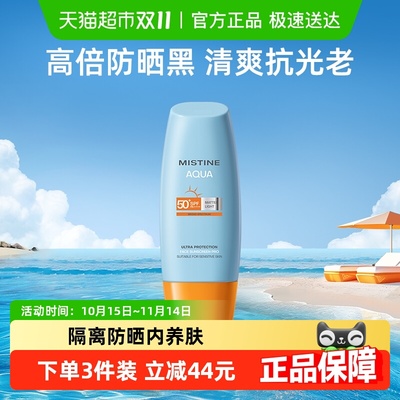 不用凑单!猫超国版线下1瓶69!【拍mistine蜜丝婷小黄帽防晒霜40ml*3件装,原价192元88会员领劵下拉详情页淘金币加购下单卷后到手86.78元/3支,折28.9元/支!叠加9折无门槛卷到手80元/3瓶折26元左右1瓶更便宜】小红书爆款夏天防晒霜!素颜小心机!SPF50+防晒系数,成分都是保湿抗氧的好手,完全不会闷痘~质地水润不黏腻,成膜超快!不仅能防晒,还养肤!