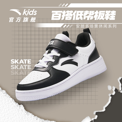 安踏儿童小白鞋!!经典不过时,防滑耐磨!皮革拼接鞋面,质感满满,污渍易擦拭!
