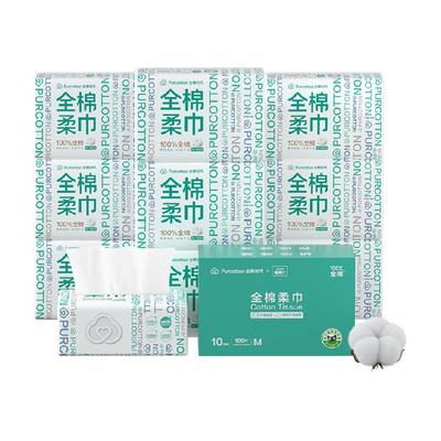 【拍10包仅88.42!立减85,下拉详情页进淘金币可抵扣15.98,叠加5元淘客券,到手93.92,88vip88.42元】全棉时代纯棉柔巾100抽*10包,满分柔软,双面平纹清洁力强,无异味,敏感肌专用,母婴级安心!
