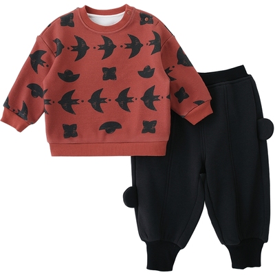 宝宝加绒卫衣套装秋冬季