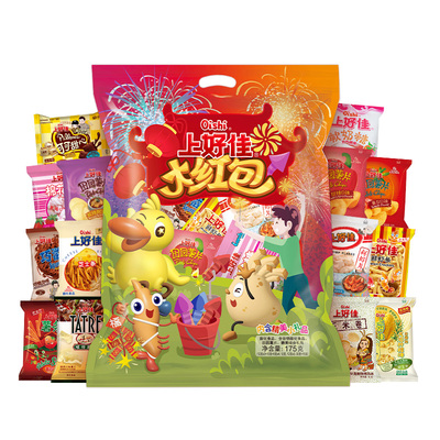 上好佳新年大红包175g/袋,内含14包零食,价格低,年货礼袋装!