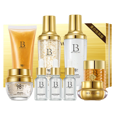 贝玲美奢宠护肤九件套!包含:【洁面乳+水+乳+眼霜++精华*3+面霜+贵妇膏】 美白淡斑版!超值九件套!! 从品牌到产品,从成分到科技,写满了两个字:高级!