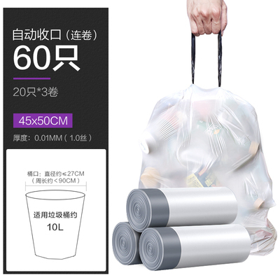 【3卷60个自动收口】e洁家用背心式垃圾,可绑可提,加厚!加宽!轻松承重,韧性十足,方便快捷,超实用,居家必备~【退货运费险】