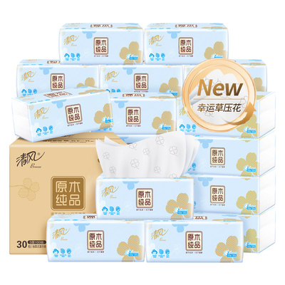 立减68元+平台券140-10+券15元+返猫卡30元,清风抽纸幸运草压花纸巾3层100抽30包