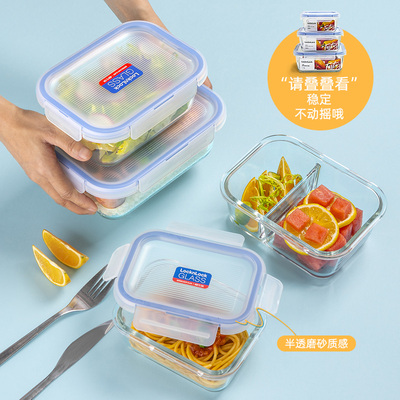 超实用的便当饭盒!透明磨砂小盖子,颜值简直太高啦!!高硼硅玻璃盒体,耐热性能一级棒,微波烤箱也都可以放心用,保留食物原始味道,打工人必备,带饭热饭超方便!!