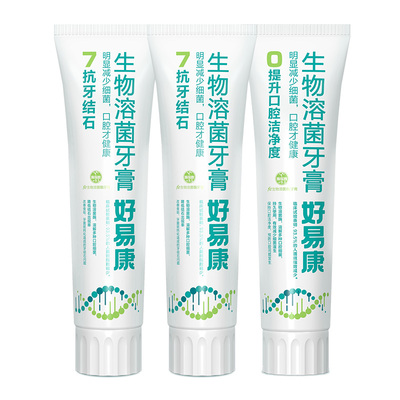 【有3元猫卡】好易康溶菌酶抗牙结石牙膏3支,超强脱渍,去垢美白,快速去除异味,持久清新,给您一个清新美白的口腔,让您放心谈话,放心笑。