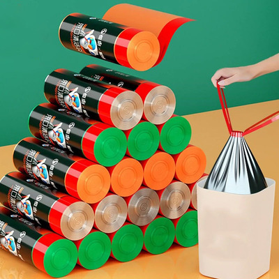 【稳定签到】【5卷共75只】彩色家用加厚,手提收口垃圾袋,拉一提不脏手。穿绳束口,岂知于颜值。双层抽绳,任性拎起的秘密~