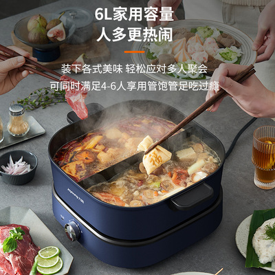 九阳电火锅锅家用多功能鸳鸯分体式大容量电炒菜锅电煎锅电煮锅6L