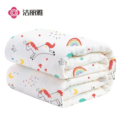 洁丽雅儿童纱布浴巾,85cm*85cm大尺寸,6层高密加厚,婴幼A类标准,不起球,不掉毛,高密亲肤棉纱,A类纯棉,精选优质长绒棉,层层棉纱,蓬松柔软!