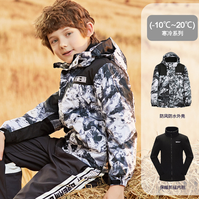 三合一可拆卸冲锋衣,防风防大雨,魔术贴袖口防风灌入,防刮领贴保护下颚,看保暖,300g双面面摇粒绒,不厚重不紧绷,保暖舒适锁住温度,透气性、出汗不怕透气干爽。