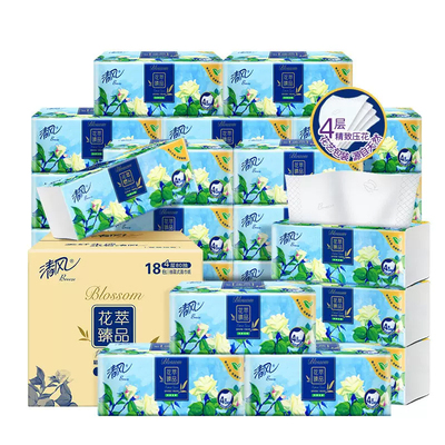 【立减42+返卡20元+券15元+88vip到手20元】清风抽纸花萃臻·品4层加厚80抽18包,花艺包装,4层加厚,柔软舒适,浪漫新颜~