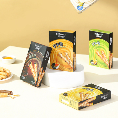 【百果圈】每处丝滑细腻尽致原味,松软丝滑,香脆口感,颠覆你对蛋卷的认识!有咸蛋黄、榴莲、芝士等多种口味任选,层层酥脆的蛋卷,包裹着浓郁的夹心,一口下去嘎嘣脆,超好吃!
