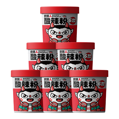食族人酸辣粉6桶超值!保持产品的原汁原味,非油炸粉丝,分量充足,搭配豌豆,口感更有Q劲!5分钟冲泡,呲溜嗦粉,酸爽鲜美,让你一口气喝到连汤都不剩!