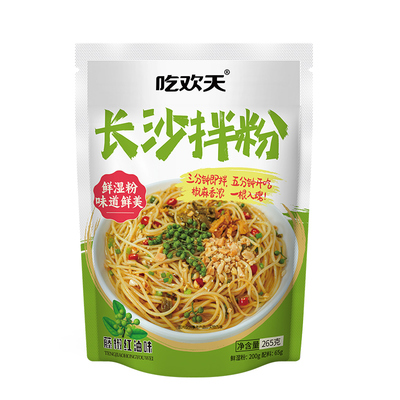 吃欢天~长沙拌粉!免煮拌粉~一根入魂!椒麻香浓,三分钟速泡,五分钟开吃!!鲜湿粉0脂肪,让你随时随地就能享受到地方特色美味!!