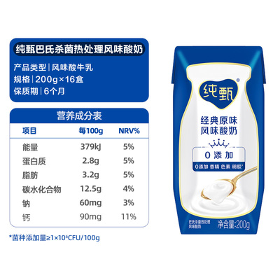 【立减27,到手32.9】蒙牛纯甄原味风味酸奶200g*16盒/整箱,甄选优质牧场奶源,丹麦进口优质菌种,为您保留纯粹的营养和美味~