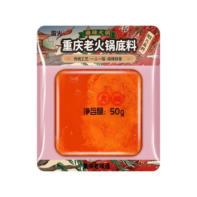 拍10件!到手共10袋!个个都是独立装,取用超级方便!拍10件!到手共10袋!严选天然食材,鲜味尽现!四川配方熬制经典牛油麻辣底料,麻烦鲜香,油而不腻,随时开涮,没有什么是一顿火锅解决不了的