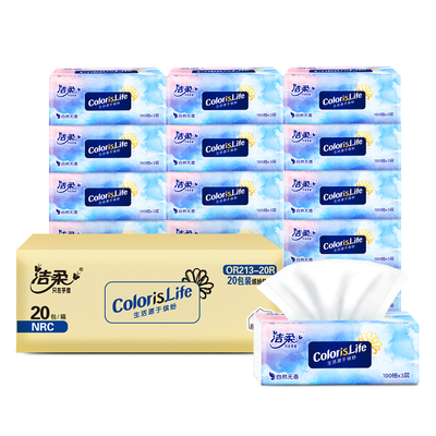 洁柔缤纷抽纸整箱装20包,每包100抽,三层加厚,湿水不易破,超市同款6包在售价19.8亓,我们整箱20包只要24.9亓,超级超级划算,每个ID可领3张券,速囤!!
